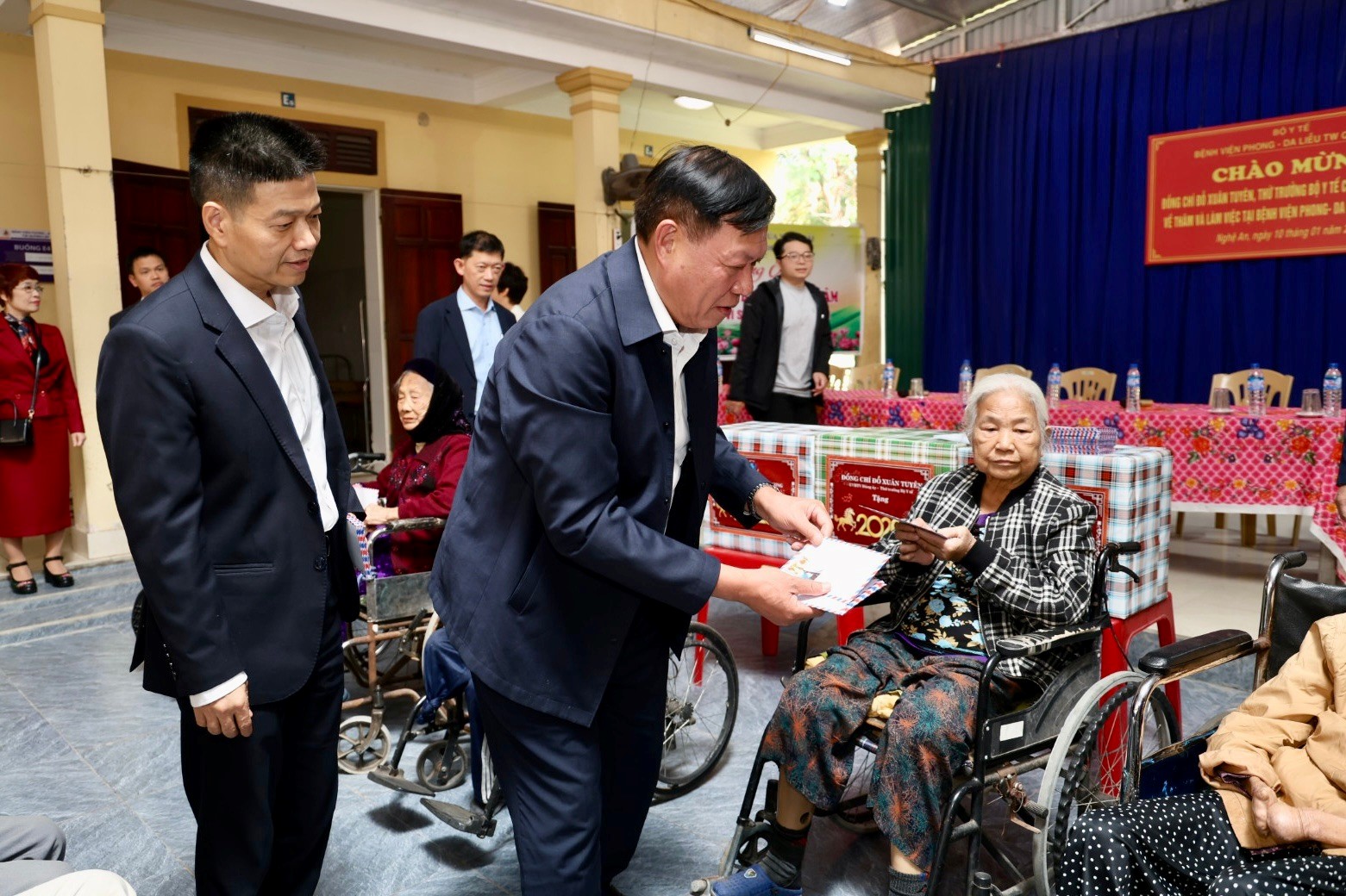Trong không khí chuẩn bị đón Tết cổ truyền Bính Ngọ, đoàn công tác đã trao tặng quà Tết của Bộ Y tế, Bệnh viện Da liễu Trung ương và lì xì một triệu đồng/người cho 137 người bệnh phong đang sinh sống và điều trị tại đây. Hoạt động thể hiện sự quan tâm sâu sắc, tinh thần "tương thân tương ái" của Bộ Y tế, Bệnh viện Da liễu Trung ương và các nhà hảo tâm.