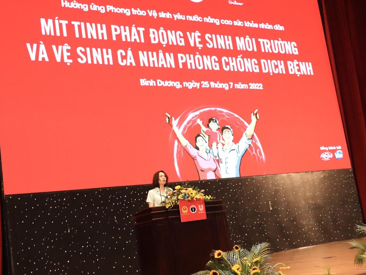 Thứ Hai, ngày 25/07/2022 07:31Ngày 25/7/2022, Bộ Y tế phối hợp với UBND tỉnh Bình Dương và với sự hỗ trợ của Unilever Việt Nam (nhãn hàng Lifebuoy, Vim) tổ chức “Mít tinh phát động vệ sinh môi trường và vệ sinh cá nhân...