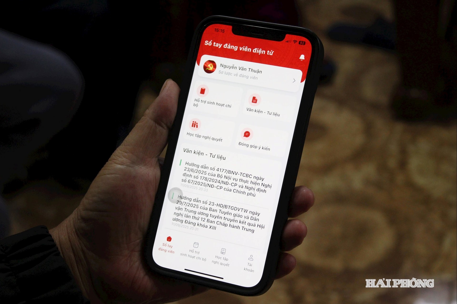 Thứ Năm, ngày 27/11/2025 09:38Nếu được khai thác hiệu quả, Sổ tay đảng viên điện tử sẽ là cẩm nang đặc biệt quan trọng của đảng viên trong thời đại số. Anh Hoàng Anh Thịnh và đảng viên trẻ ở phường Lê Chân (Hải...