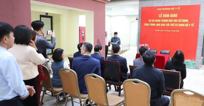 Chiều 14/01/2026, tại trụ sở Bộ Y tế, Văn phòng Bộ Y tế thực hiện bàn giao, đưa vào sử dụng công trình Nhà kho lưu trữ, thuộc hợp phần của Dự án Xây dựng, cải tạo, sửa chữa, nâng cấp cơ quan Bộ Y tế.