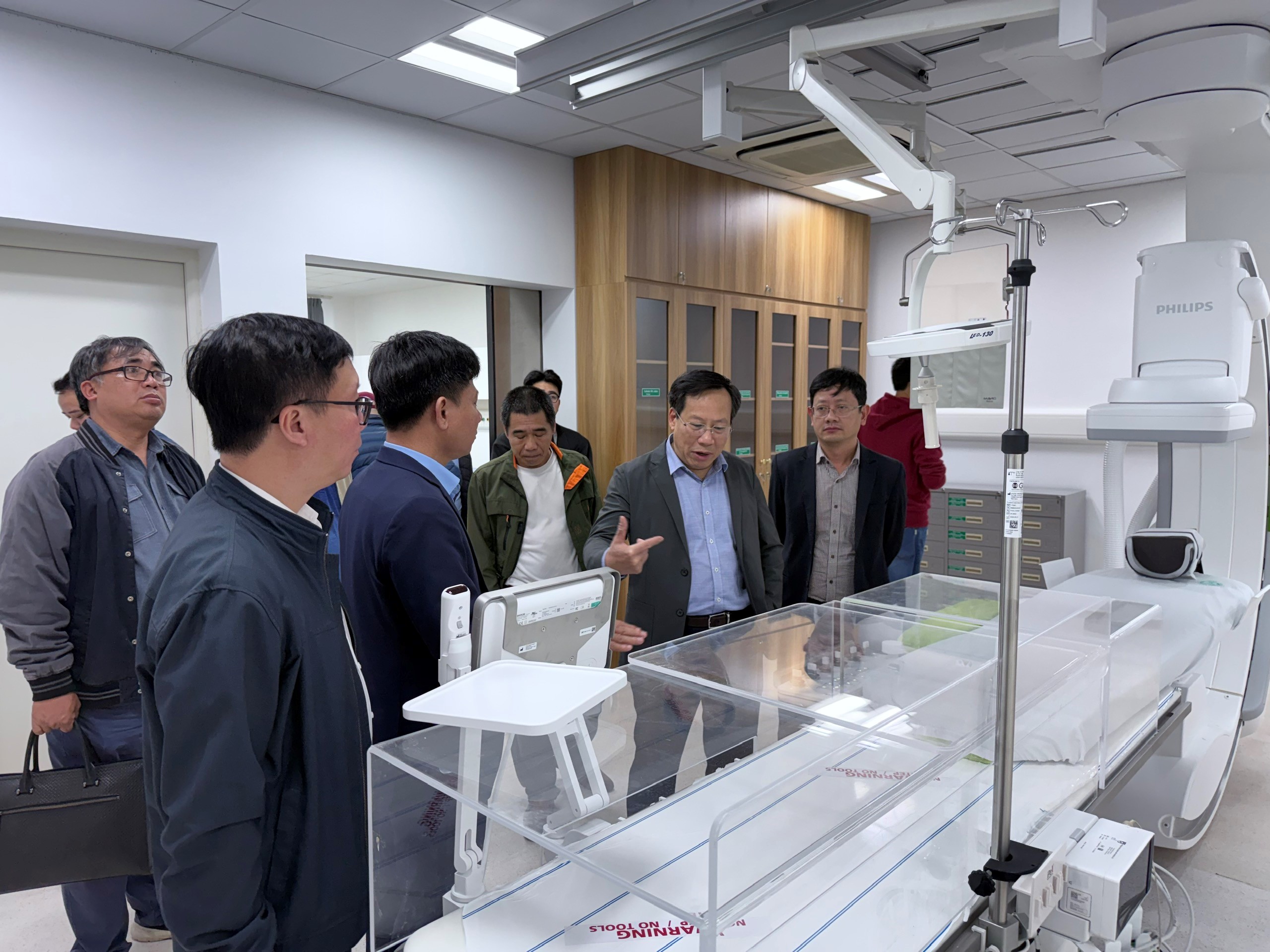 Thứ trưởng Lê Đức Luận nghe báo cáo về hệ thống thiết bị y tế của Bệnh viện Bạch Mai cơ sở 2.