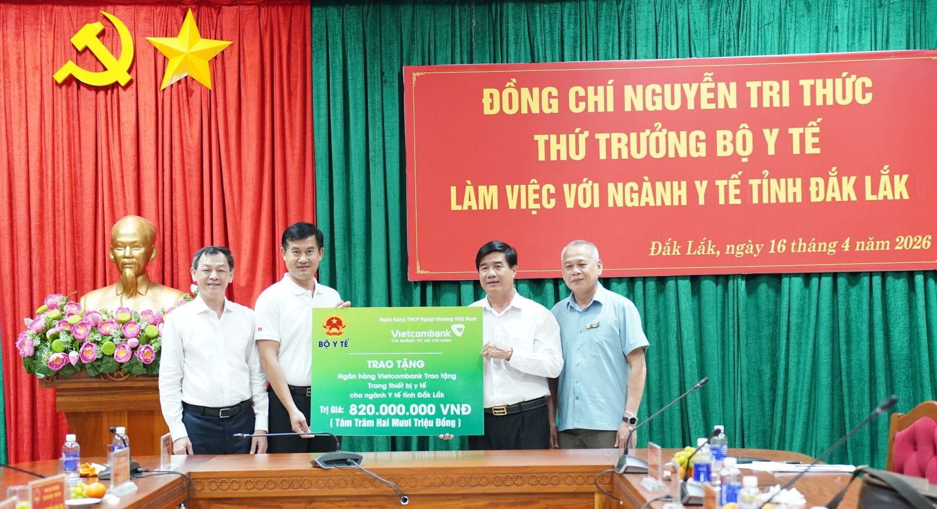 Nhân dịp này, đoàn công tác đã trao tặng trang thiết bị y tế cho ngành Y tế tỉnh Đắk Lắk trị giá 820 triệu đồng.