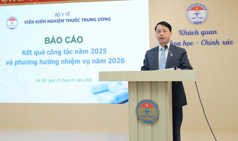 Nhấn mạnh tầm quan trọng của Viện Kiểm nghiệm thuốc Trung ương trong đảm bảo chất lượng thuốc, mỹ phẩm, nguyên liệu làm thuốc... góp phần nâng cao chất lượng bảo vệ, chăm sóc và nâng cao sức khỏe người dân, Thứ trưởng Bộ Y tế Nguyễn Tri Thức yêu cầu Viện tiếp tục nâng cao chất lượng kiểm nghiệm, tăng cường hợp tác quốc tế, nghiên cứu khoa học, đẩy mạnh ứng dụng công nghệ thông tin, trí tuệ nhân tạo và chuyển đổi số để quản lý dữ liệu kiểm nghiệm đồng bộ, thông suốt hiệu quả;