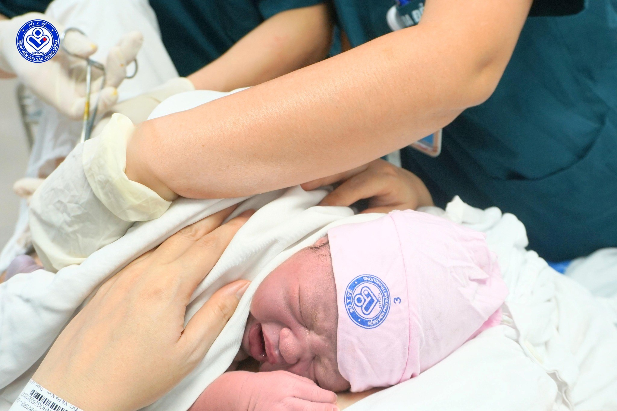 Ngay sau sinh, bé Khánh Linh được thực hiện da kề da với mẹ – một khoảnh khắc gắn kết thiêng liêng, nơi tình mẫu tử được đánh thức bằng hơi ấm và nhịp tim yêu thương.