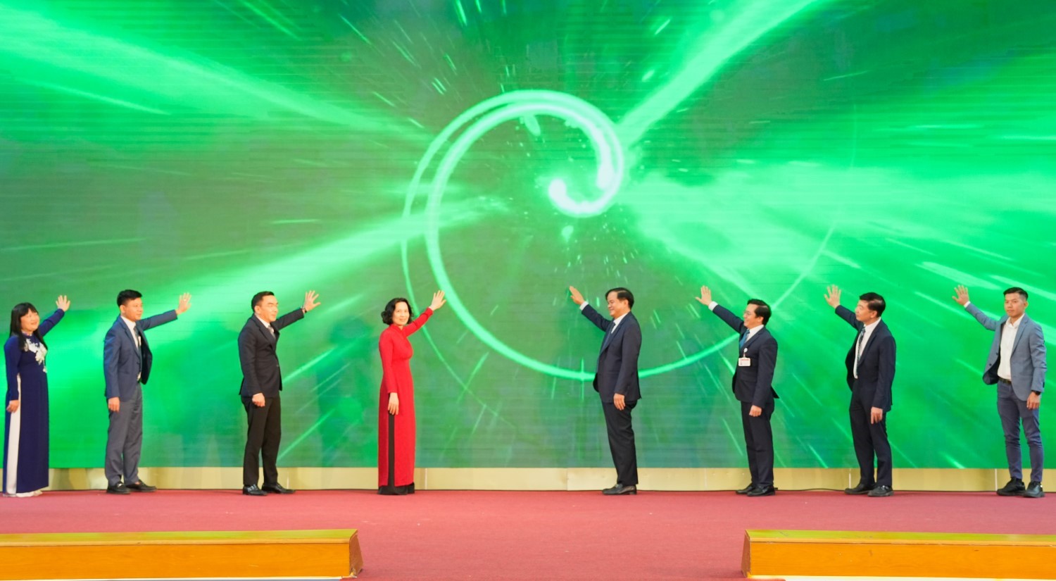 Thứ trưởng Bộ Y tế Nguyễn Thị Liên Hương và các đại biểu ấn nút khai trương hệ sinh thái số và hạ tầng thông minh