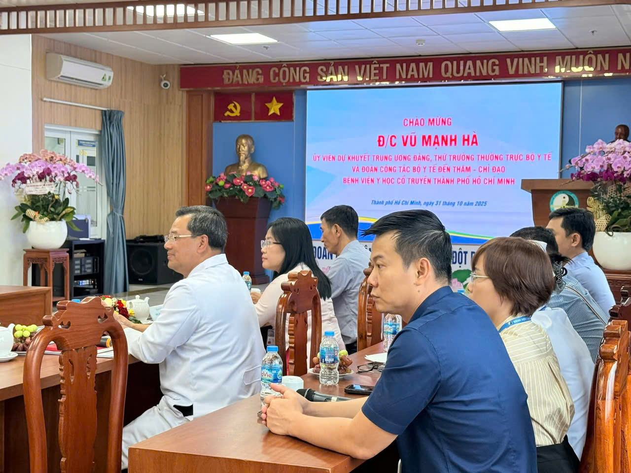 Phát biểu tại buổi làm việc với tập thể lãnh đạo quản lý, các khoa, phòng của Bệnh viện Y học cổ truyền TP.Hồ Chí Minh, Thứ trưởng Thường trực Bộ Y tế Vũ Mạnh Hà ghi nhận, đánh giá cao nỗ lực của tập thể Bệnh viện trong việc nâng cao chất lượng khám chữa bệnh, phát triển Y học cổ truyền gắn với y học hiện đại, đồng thời chú trọng nâng cao cơ sở hạ tầng khuôn viên cảnh quan bệnh viện, đổi mới mô hình quản lý, đào tạo và nghiên cứu khoa học nhằm đáp ứng nhu cầu chăm sóc sức khỏe ngày càng cao của người dân.