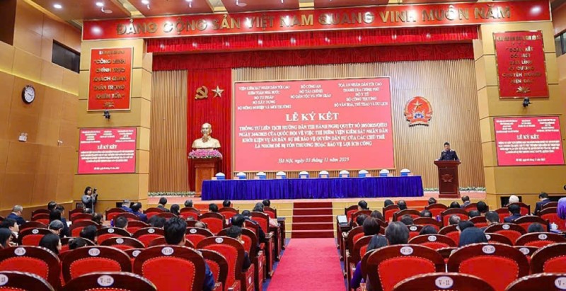 Chiều 03/11/2025, tại Hà Nội, Viện Kiểm sát Nhân dân (KSND) tối cao chủ trì tổ chức Lễ ký Thông tư liên tịch hướng dẫn thi hành Nghị quyết số 205/2025/QH15 ngày 24/6/2025 của Quốc hội về việc thí điểm VKSND khởi kiện vụ án dân sự để bảo vệ quyền dân sự của các chủ thể là nhóm dễ bị tổn thương hoặc bảo vệ lợi ích công.