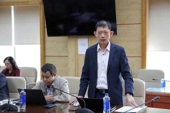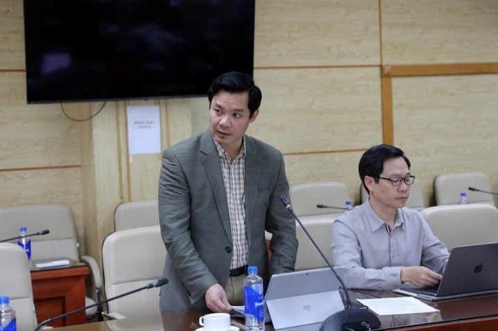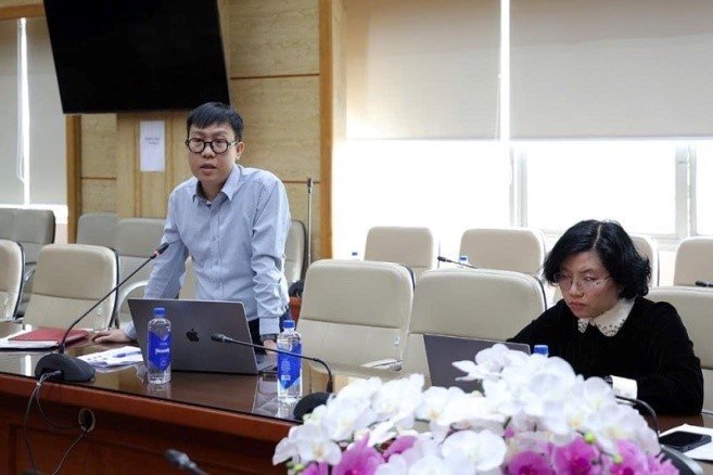 Đ/c Nguyễn Trường Nam, Phó Giám đốc Trung tâm Thông tin Y tế Quốc gia báo cáo tại cuộc họp
