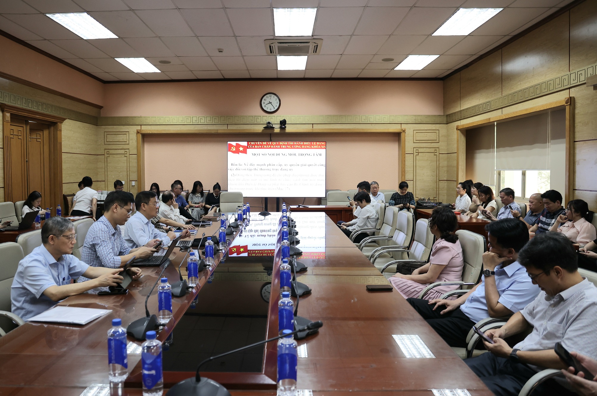 Tại Hội nghị, các đại biểu đã nghe 5 chuyên đề. Cụ thể là, Chuyên đề Quy định thi hành Điều lệ Đảng do đồng chí Nguyễn Duy Ngọc, Ủy viên Bộ Chính trị, Bí thư Trung ương Đảng, Trưởng Ban Tổ chức Trung ương trình bày.