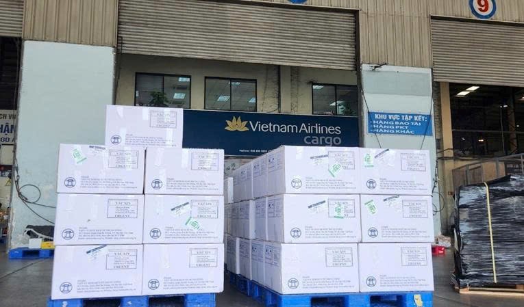 Vận chuyển vắc xin phòng COVID-19 trên chuyến bay của VietnamAirlines.