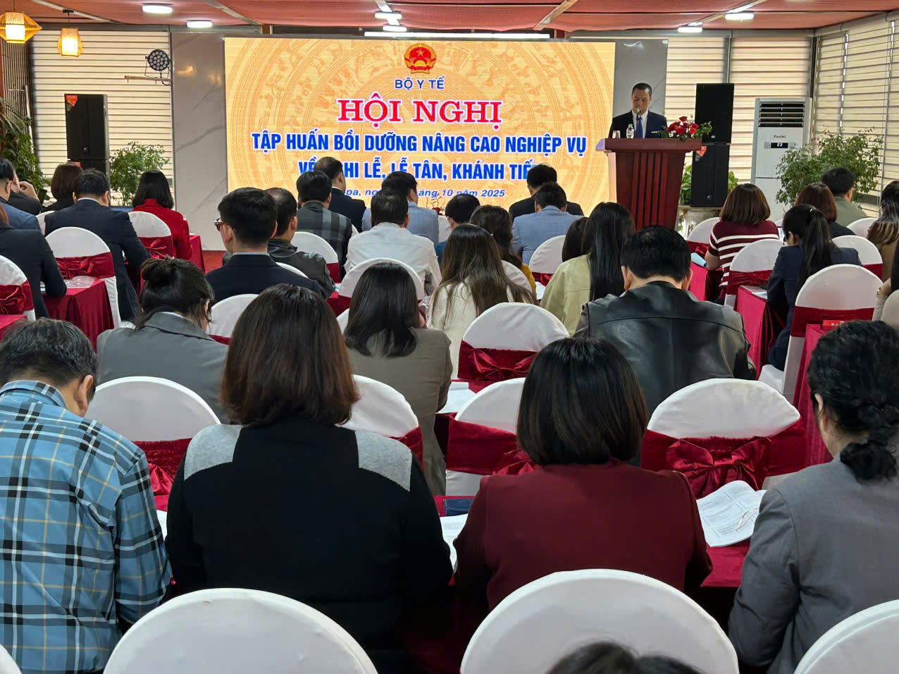 Tiếp tục thực hiện kế hoạch đào tạo, bồi dưỡng nâng cao chất lượng nguồn nhân lực trong công tác nghiệp vụ lễ tân, khánh tiết, ngày 31/10/2025, tại tỉnh Lào Cai, Văn phòng Bộ Y tế tổ chức khóa tập huấn bồi dưỡng nâng cao nghiệp vụ về nghi lễ, lễ tân, khánh tiết cho hơn 120 cán bộ làm công tác văn phòng. Tham dự công tác tập huấn có Giảng viên chính TS. Nguyễn Mạnh Cường, Học viện Hành chính và Quản trị công.