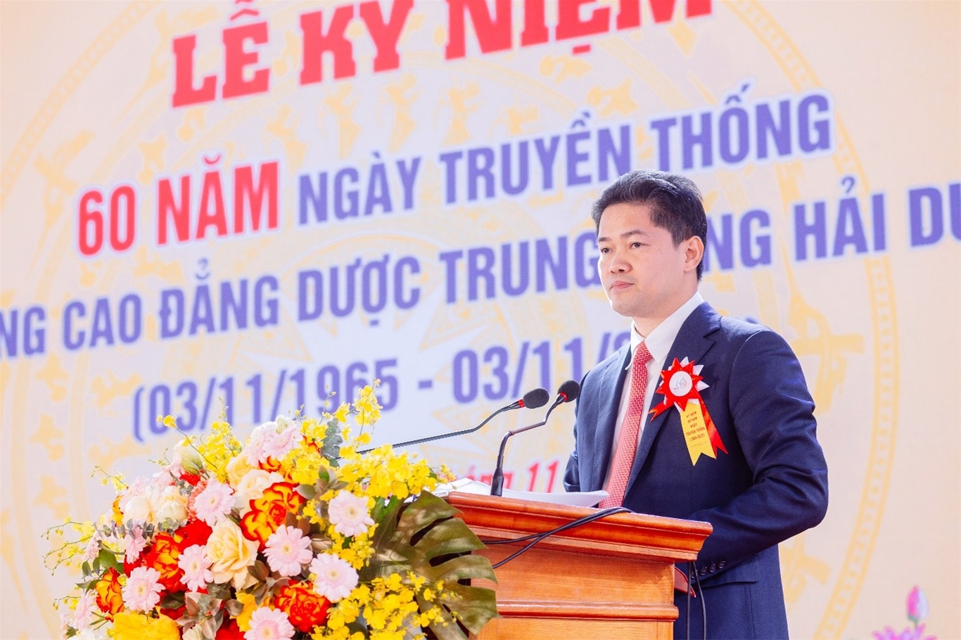 TS. Trần Bá Kiên, Hiệu trưởng nhà trường trình bày diễn văn ôn lại truyền thống vẻ vang, tri ân các thế hệ đi trước và khẳng định định hướng phát triển trong giai đoạn mới, gắn đào tạo với thực tiễn, hội nhập quốc tế và chuyển đổi số trong giáo dục nghề nghiệp lĩnh vực Dược. Sau 60 năm phát triển, trường Cao đẳng Dược Trung ương Hải Dương đã mở rộng sang nhiều lĩnh vực mới như kỹ thuật dược, quản lý huấn luyện sức khỏe, công nghệ thực phẩm - dược phẩm, dược cộng đồng, dược liệu, dược học cổ truyền, kỹ thuật kiểm nghiệm thuốc, chăm sóc sắc đẹp… Đây là bước phát triển đa ngành, đa lĩnh vực, bảo đảm cung cấp nguồn nhân lực chất lượng cao, đáp ứng yêu cầu ngày càng khắt khe của thị trường lao động trong thời kỳ hội nhập quốc tế.
