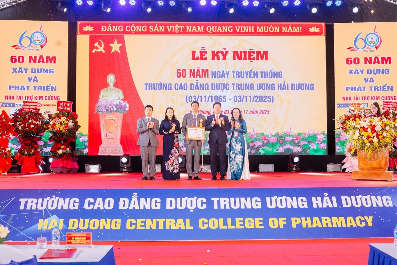 Sáng 03/11/2025, tại Hải Phòng, Trường Cao đẳng Dược Trung ương Hải Dương (HCCP) tổ chức Lễ kỷ niệm 60 năm Ngày truyền thống (03/11/1965-03/11/2025).