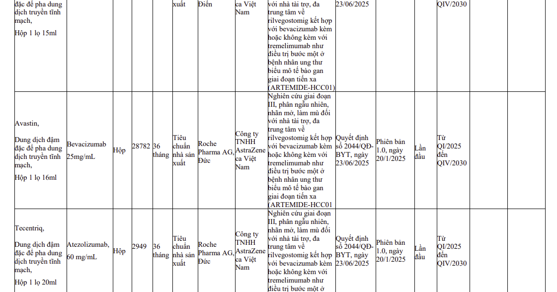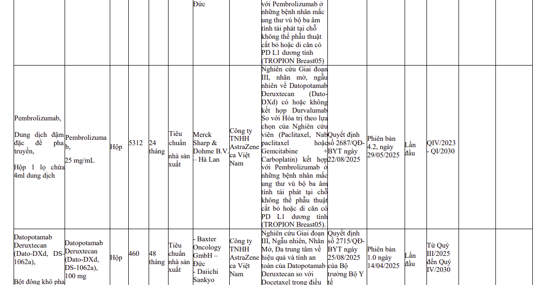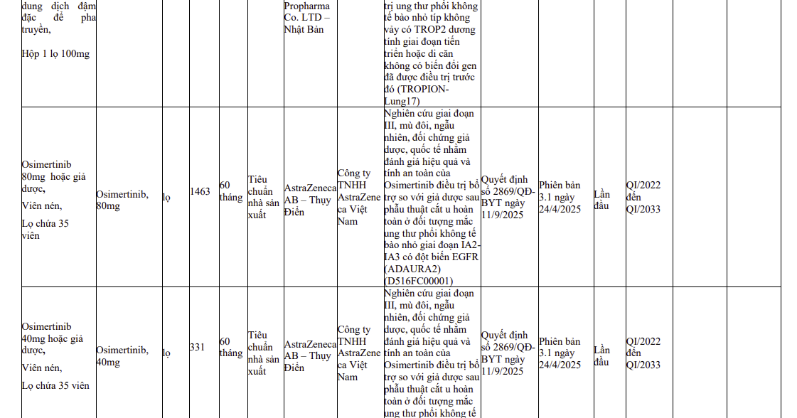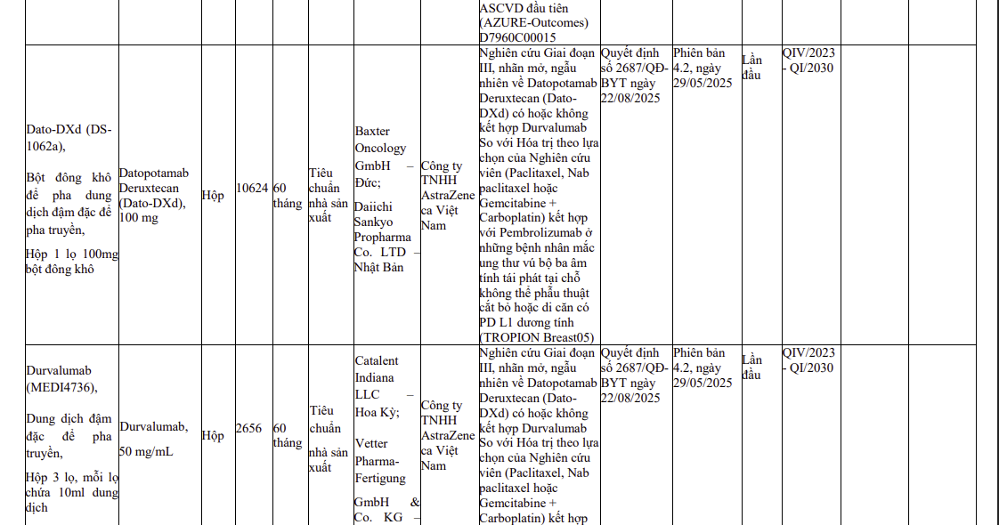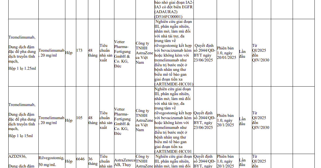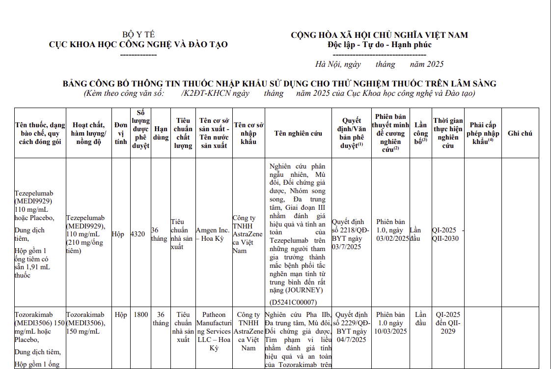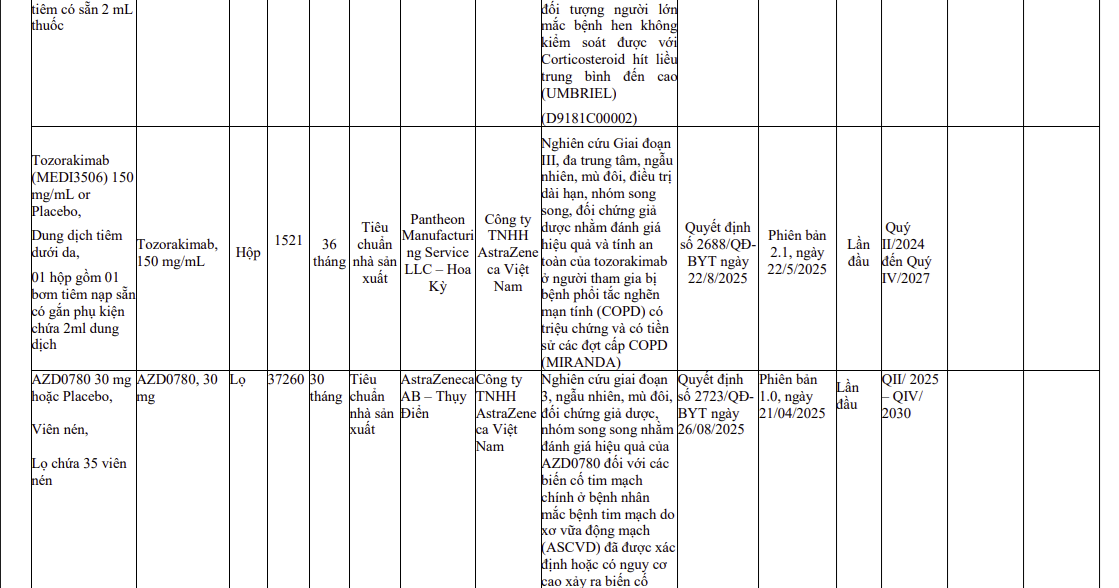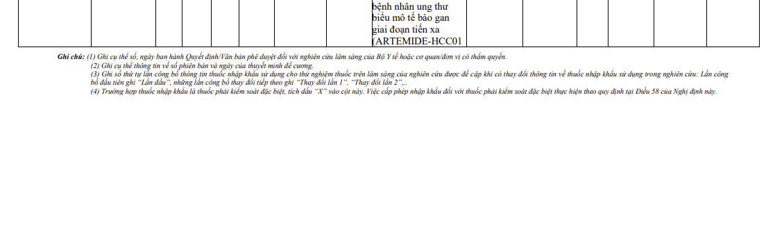 Thông tin các thuốc nhập khẩu sử dụng cho thử nghiệm thuốc trên lâm sàng (2590)