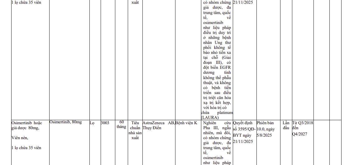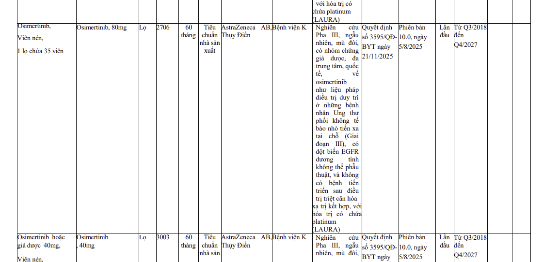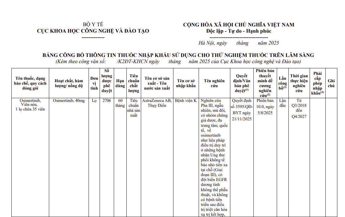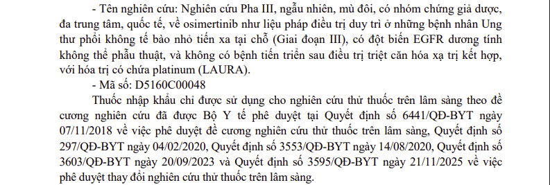 Thông tin các thuốc nhập khẩu sử dụng cho thử nghiệm thuốc trên lâm sàng (Mã số: D5160C00048)