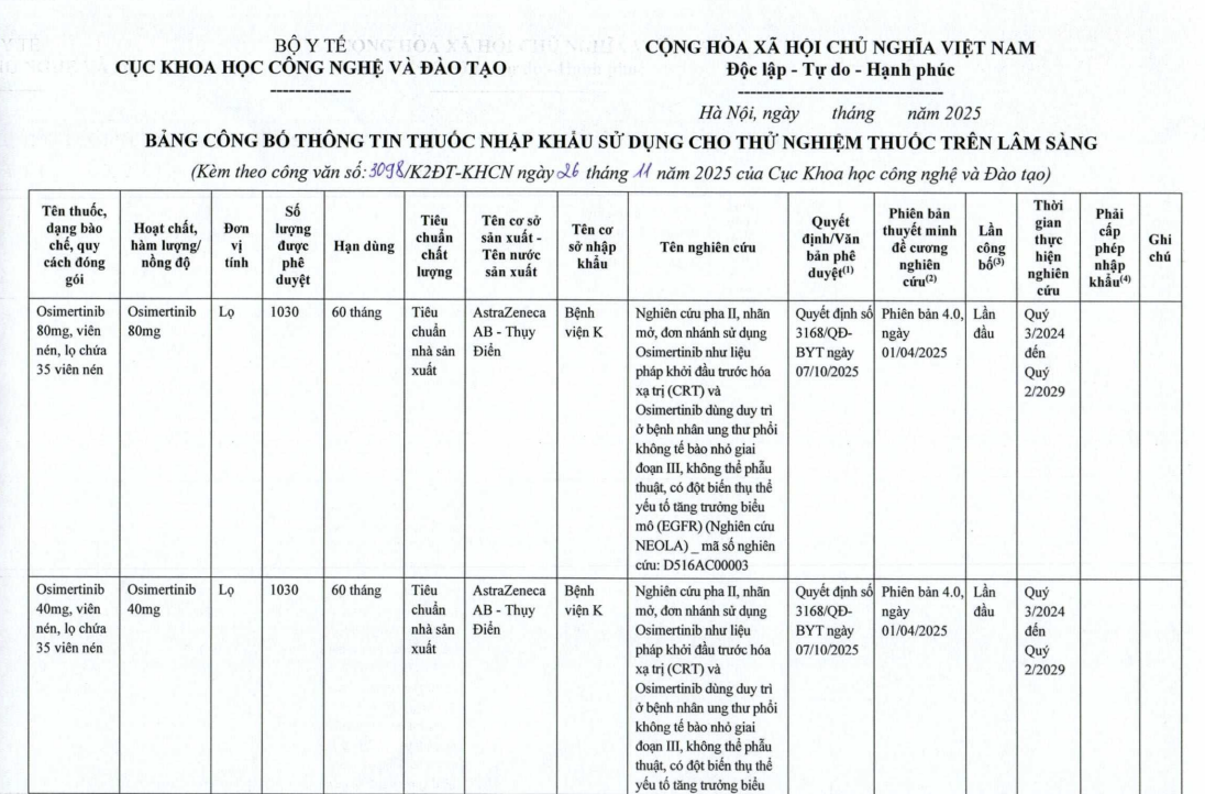 - Thông tin các thuốc nhập khẩu sử dụng cho thử nghiệm thuốc trên lâm sàng (2976)