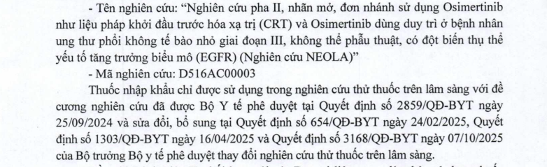 - Thông tin các thuốc nhập khẩu sử dụng cho thử nghiệm thuốc trên lâm sàng (Mã số: D4191C00137)