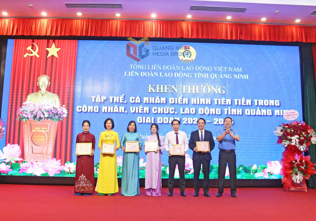 Bác sĩ Ngô Quang Chức (thứ 2 bên phải) được LĐLĐ tỉnh khen thưởng điển hình tiên tiến trong công nhân viên chức lao động tỉnh Quảng Ninh, giai đoạn 2020-2025.