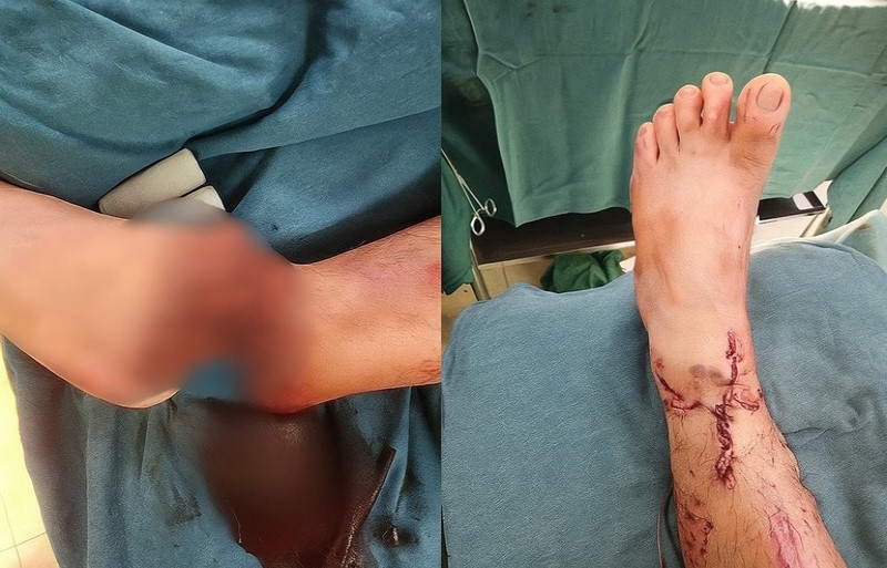 Trực tiếp phẫu thuật cho bệnh nhân V.H.T., bác sĩ chuyên khoa 2 Bùi Đức Phương, Trưởng khoa Chấn thương-Chỉnh hình-Bỏng, Bệnh viện đa khoa tỉnh Điện Biên, cho biết: Hồi 15 giờ chúng tôi đã hoàn thành ca phẫu thuật nối chân trái cho bệnh nhân. Đến 16 giờ 30 phút, bệnh nhân đã tỉnh, tiếp xúc được; đầu chi chân trái hồng ấm, băng vết mổ có nhiều dịch thấm băng.