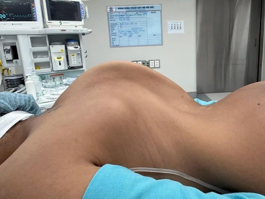 Trong thời gian chờ can thiệp, tình trạng của bé L. diễn tiến nhanh. Chỉ trong bảy tháng, độ vẹo cột sống từ 78 độ tăng vọt lên 104 độ, kéo theo đường cong thứ hai 80 độ ở vùng thắt lưng. Cột sống xoắn chặt như chiếc cầu thang xoắn khiến bé đau đớn liên tục, khó thở và hạn chế vận động. Mẹ bé chia sẻ nhiều lần chị run rẩy, không dám đặt bút ký giấy cam kết phẫu thuật vì sợ con không qua khỏi.