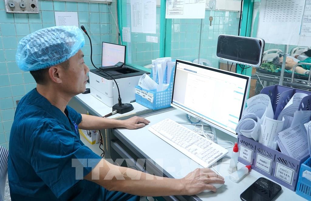 Trong khi nhiều gia đình quây quần bên mâm cơm đoàn viên, đội ngũ y, bác sĩ nơi đây vẫn miệt mài với nhiệm vụ chuyên môn, túc trực 24/24 giờ để bảo đảm công tác cấp cứu, điều trị cho người bệnh. Ảnh: Thanh Thuỷ-TTXVN