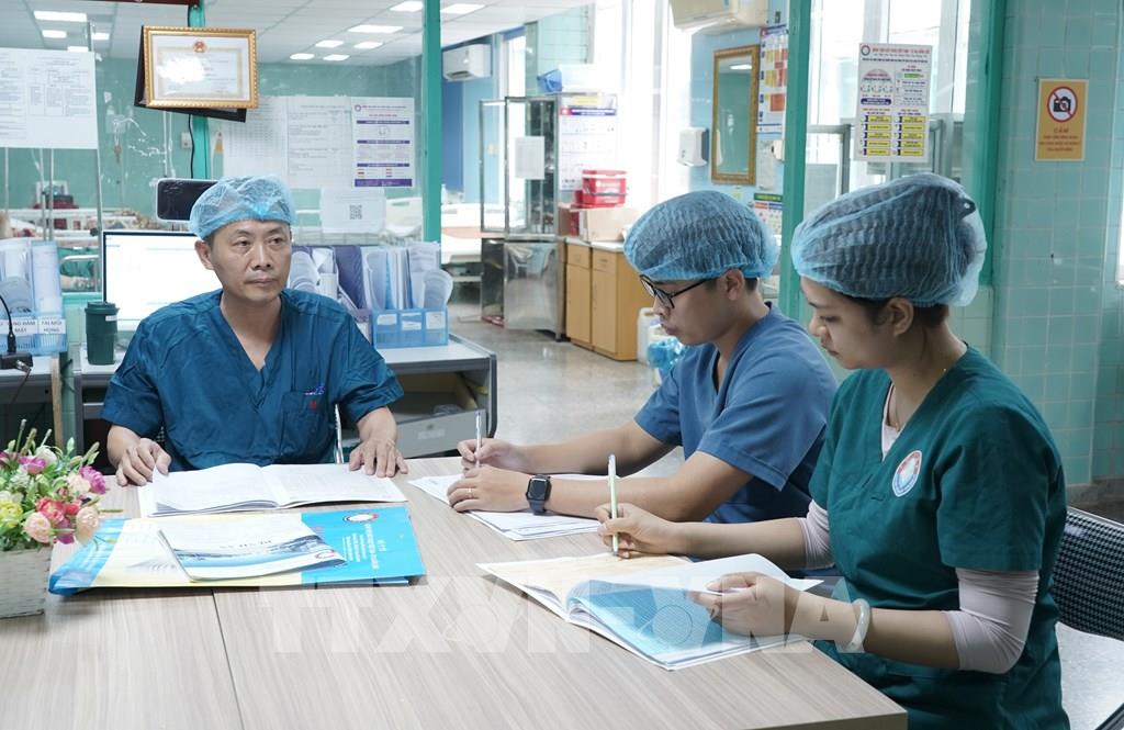 Trong suốt 26 năm công tác với nghề thì bác sĩ Bùi Xuân Hải, Trưởng khoa Gây mê hồi sức (bìa trái ảnh) có khoảng 10 lần đón Tết tại bệnh viện. Ảnh: Thanh Thuỷ-TTXVN