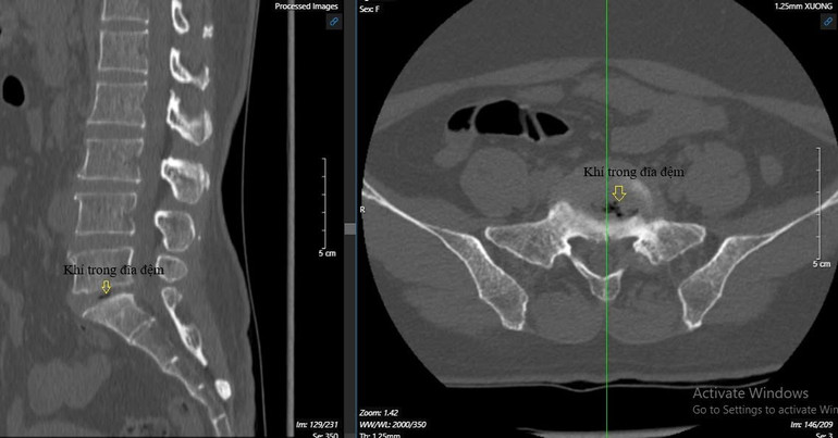 Tuy nhiên, bệnh nhân này có khí trong đĩa đệm nên cần phải thay đĩa đệm bằng miếng ghép và cố định cột sống.