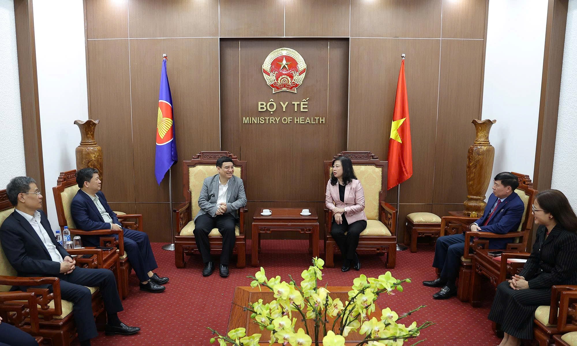 Ủy viên Ban Chấp hành Trung ương Đảng, Bộ trưởng Bộ Y tế Đào Hồng Lan đón tiếp đoàn.