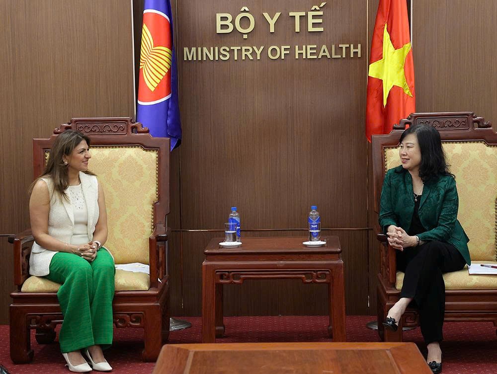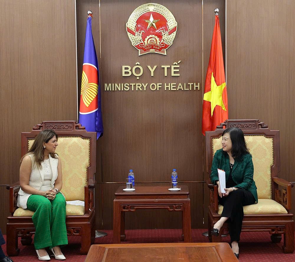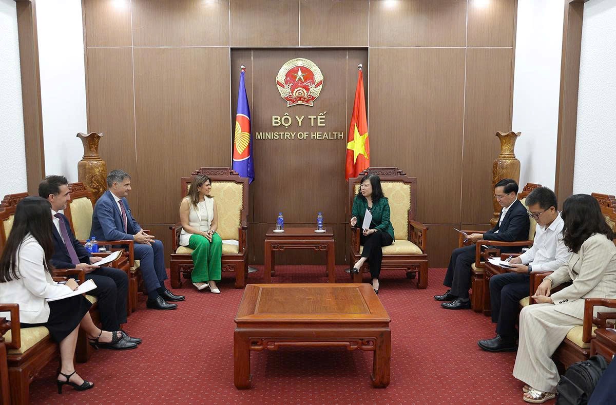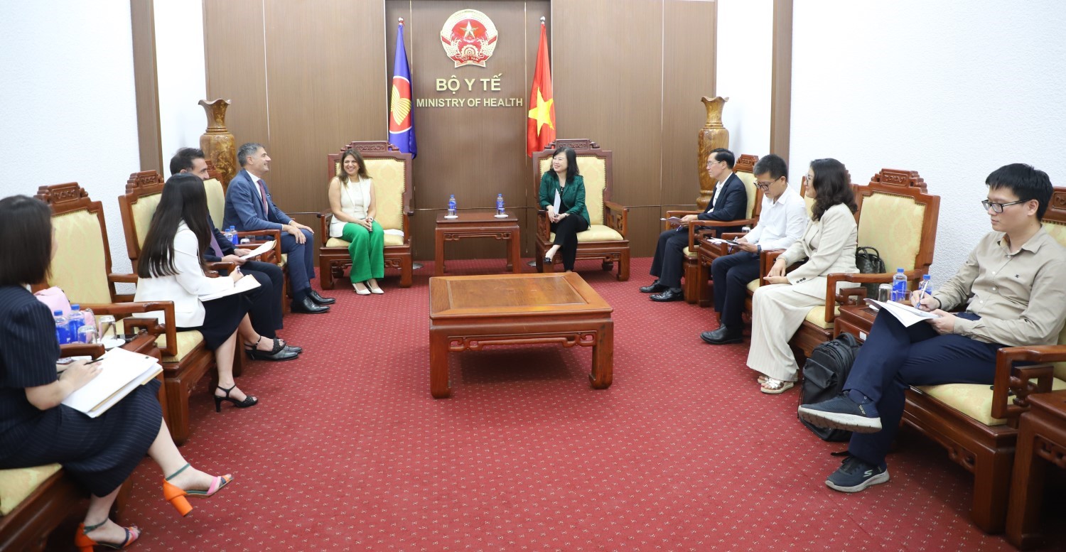 Tham dự buổi tiếp và làm việc với Bộ trưởng Đào Hồng Lan, về phía Bộ Y tế có đại diện lãnh đạo Cục Quản lý Dược, Vụ Hợp tác Quốc tế.