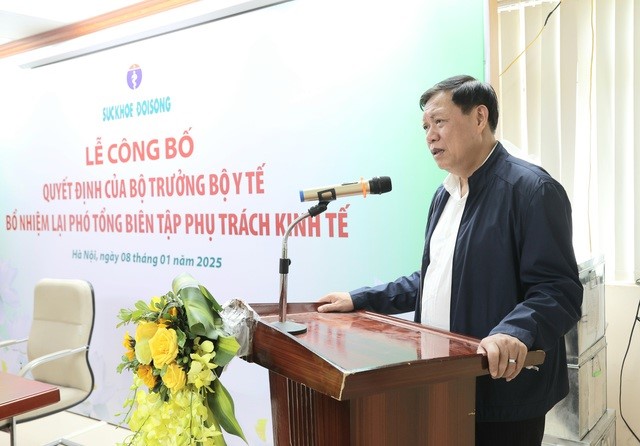 Sáng 08/01/2025, tại trụ sở Báo Sức khỏe và Đời sống, thay mặt Ban cán sự Đảng Bộ Y tế, Lãnh đạo Bộ Y tế, Thứ trưởng Bộ Y tế Đỗ Xuân Tuyên đã trao quyết định của Bộ trưởng Bộ Y tế bổ nhiệm lại Phó Tổng Biên tập Báo Sức khỏe và Đời sống.
