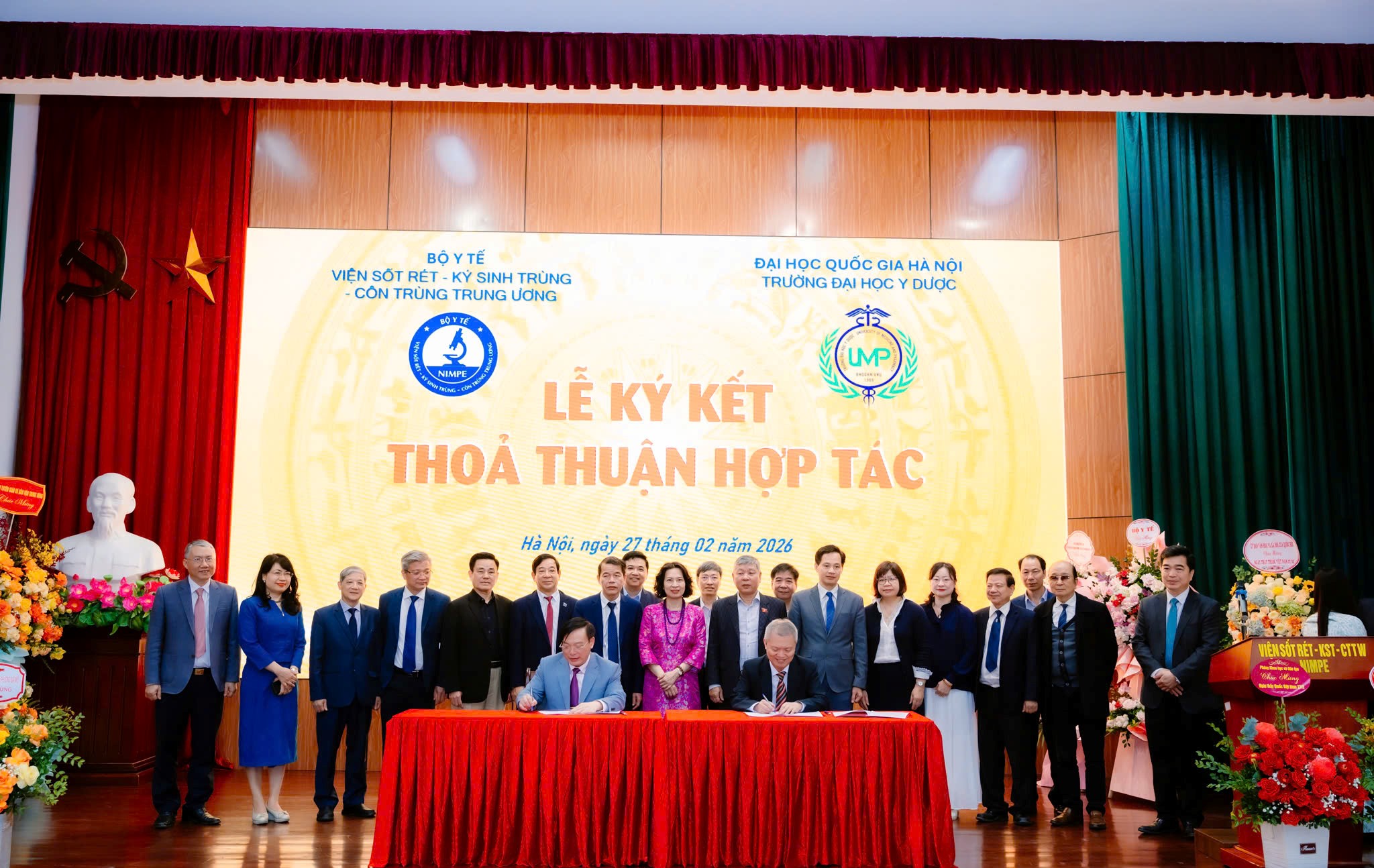Ngày 27/02/2026, Viện Sốt rét - Ký sinh trùng - Côn trùng Trung ương tổ chức Lễ kỷ niệm 71 năm Ngày Thầy thuốc Việt Nam; công bố Quyết định bổ nhiệm, bổ nhiệm lại chức danh Giáo sư, Phó Giáo sư của cơ sở đào tạo; ký kết ghi nhớ hợp tác với Trường Đại học Y dược, Đại học Quốc gia Hà Nội.