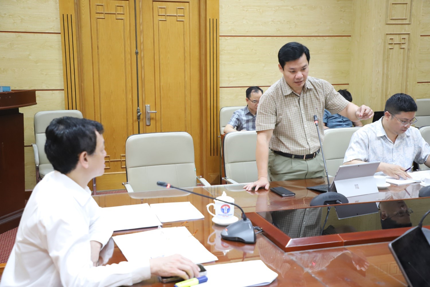 Đại biểu tham dự cuộc họp đã báo cáo với Thứ trưởng Bộ Y tế Nguyễn Tri Thức về nhóm công việc cụ thể nhằm tiếp tục hoàn thiện thể chế, phát triển hạ tầng số và nâng cao hiệu quả cung cấp dịch vụ công trực tuyến, tuân thủ theo yêu cầu của công tác chuyển đổi số ngành Y tế.