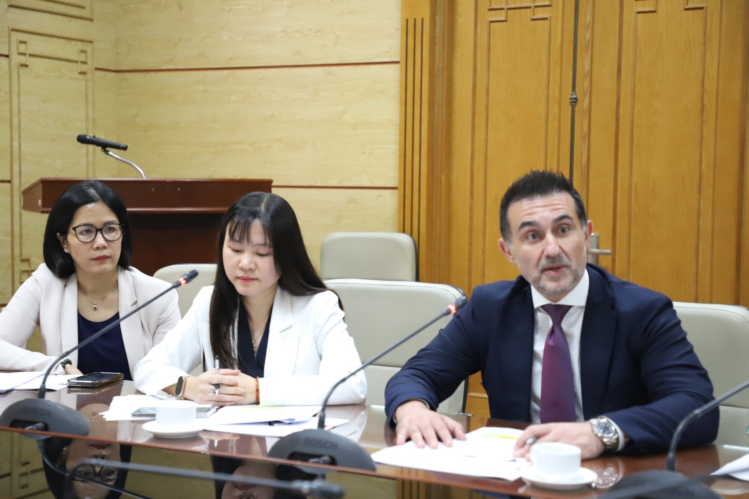 Đoàn công tác của Tập đoàn Sanofi còn có bà Zainab Sadat, Tổng Giám đốc ngành hàng vắc-xin khu vực Đông Nam Á và Ấn Độ; ông Burak Pekmezci, Tổng Giám đốc Sanofi-Aventis Việt Nam cùng một số thành viên khác.