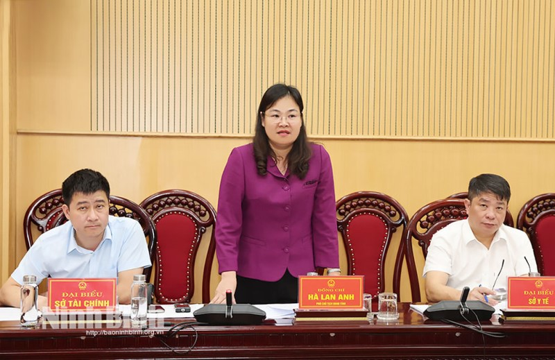 Đồng chí Phó Chủ tịch UBND tỉnh Ninh Bình khẳng định, tỉnh Ninh Bình luôn dành quan tâm, ưu tiên đến công tác an sinh xã hội, trong đó có công tác bảo vệ, chăm sóc và nâng cao sức khoẻ nhân dân. Tỉnh đang nỗ lực triển khai thực hiện hồ sơ sức khoẻ điện tử cho người dân trên địa bàn; 30 cơ sở y tế của tỉnh đã thực hiện bệnh án điện tử. Về một số góp ý, trao đổi của đoàn công tác, Phó Chủ tịch UBND tỉnh Hà Lan Anh cho biết tỉnh tiếp thu và sẽ triển khai thực hiện theo hướng phù hợp. Tỉnh sẽ tiếp tục tập trung giải ngân các nguồn vốn chương trình mục tiêu quốc gia, hoàn thành mục tiêu trong năm 2025.
