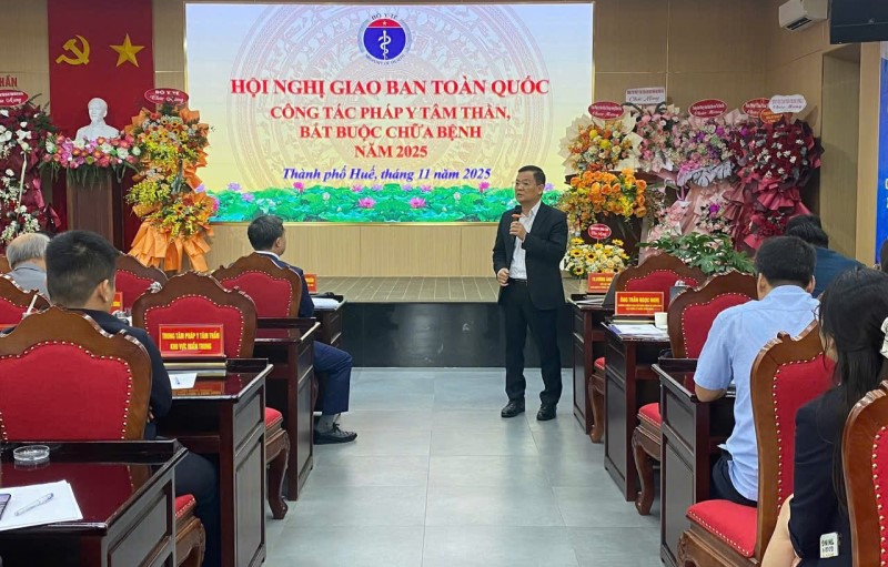 Sáng ngày 26/11/2025, tại Hội trường Trung tâm Pháp y tâm thần khu vực Miền Trung, Bộ Y tế tổ chức Hội nghị toàn quốc giao ban công tác pháp y tâm thần và bắt buộc chữa bệnh năm 2025. GS.TS Trần Văn Thuấn, Thứ trưởng Bộ Y tế, Chủ tịch Hội đồng Y khoa Quốc gia chủ trì Hội nghị.