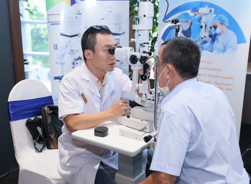 Hoạt động khám mắt cho người cao tuổi được tiến hành trong không gian chương trình