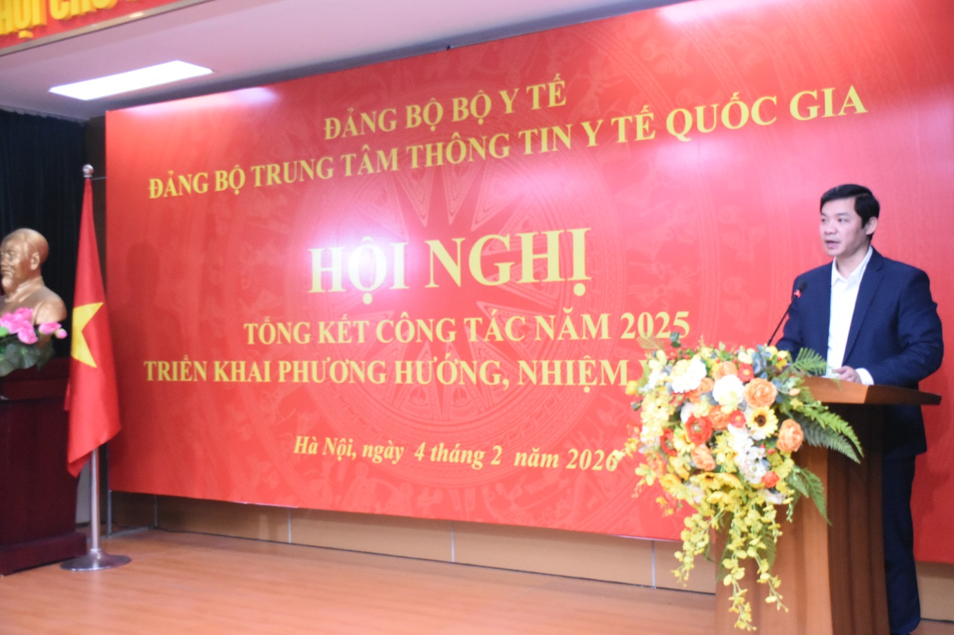 Phát biểu chỉ đạo tại Hội nghị, đồng chí Nguyễn Tri Thức, Ủy viên Ban Thường vụ Đảng ủy, Thứ trưởng Bộ Y tế, ghi nhận và đánh giá cao những kết quả mà Đảng bộ Trung tâm Thông tin Y tế Quốc gia đã đạt được trong năm 2025; biểu dương tinh thần đoàn kết, nỗ lực và trách nhiệm của tập thể cán bộ, đảng viên, viên chức và người lao động Trung tâm trong việc thực hiện các nhiệm vụ được giao.