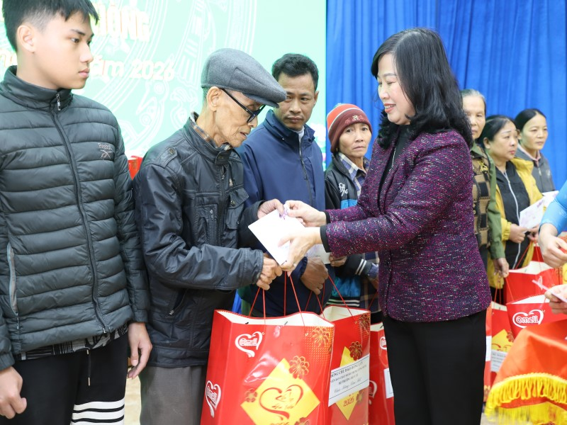 Trao 200 suất quà tới bà con nhân dân, mỗi suất gồm hiện vật và 1 triệu đồng, Bộ trưởng Bộ Y tế cũng bày tỏ lòng tri ân sâu sắc đối với những đóng góp, hy sinh của các gia đình chính sách, người có công trong sự nghiệp đấu tranh giải phóng dân tộc, xây dựng và bảo vệ Tổ quốc. Đối với các hộ gia đình có hoàn cảnh khó khăn, đồng chí Bộ trưởng Bộ Y tế Đào Hồng Lan chia sẻ, động viên các gia đình nỗ lực vượt qua khó khăn, ổn định cuộc sống, tin tưởng vào sự quan tâm, đồng hành của Đảng, Nhà nước và chính quyền địa phương, phấn đấu vươn lên trong lao động, sản xuất. Chúc bà con nhân dân địa phương đón Tết cổ truyền của dân tộc trong không khí vui tươi, đầm ấm, nghĩa tình./.