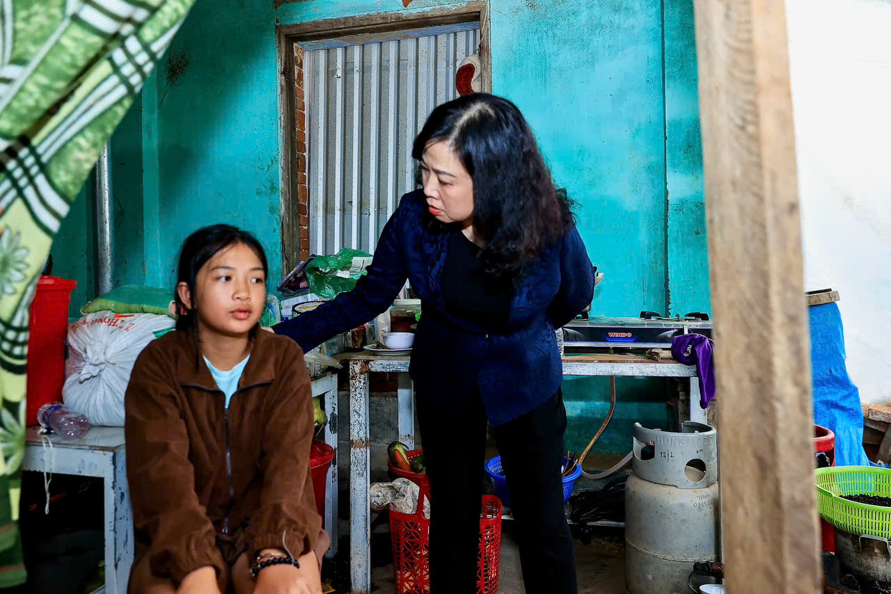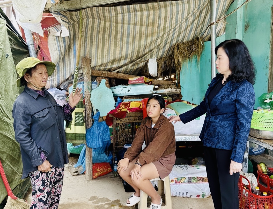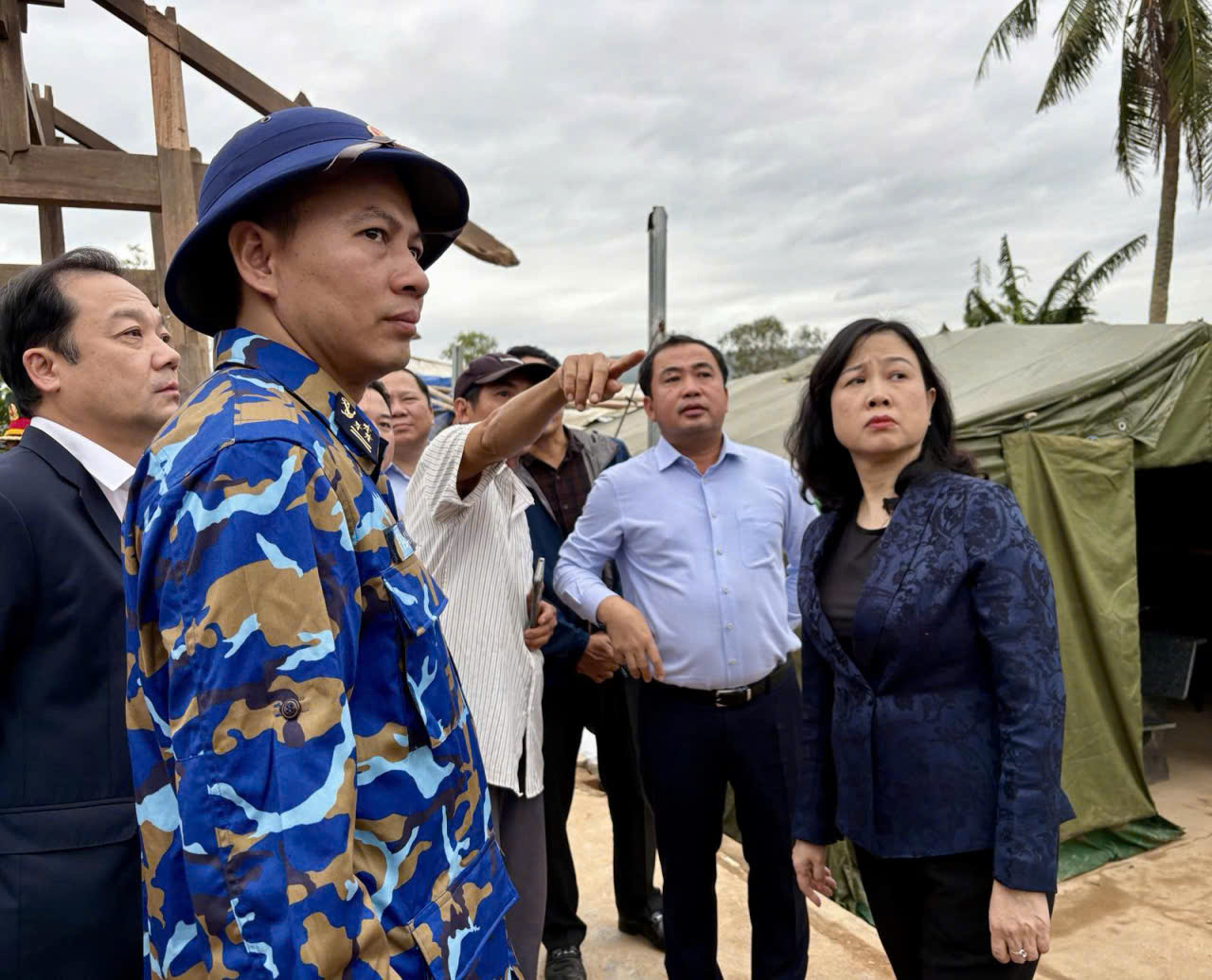 Bộ trưởng Bộ Y tế Đào Hồng Lan đã đến thăm, động viên một số hộ gia đình có nhà bị sập hoàn toàn, thiệt hại nặng nề