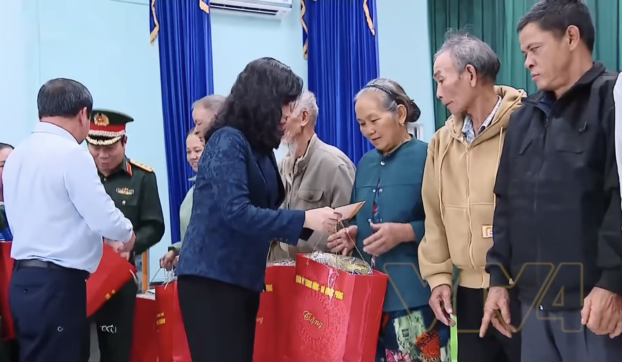 Bộ trưởng Bộ Y tế Đào Hồng Lan tặng quà động viên đồng bào vùng lũ tỉnh Đắk Lắk