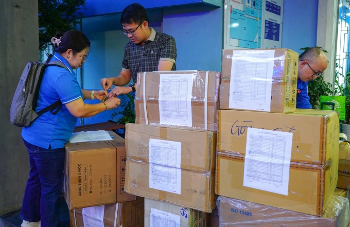 Các y bác sĩ TP HCM vận chuyển đồ lên xe để đến hỗ trợ Đăk Lăk, sáng 25/11. Ảnh: Bệnh viện Nhân dân Gia Định