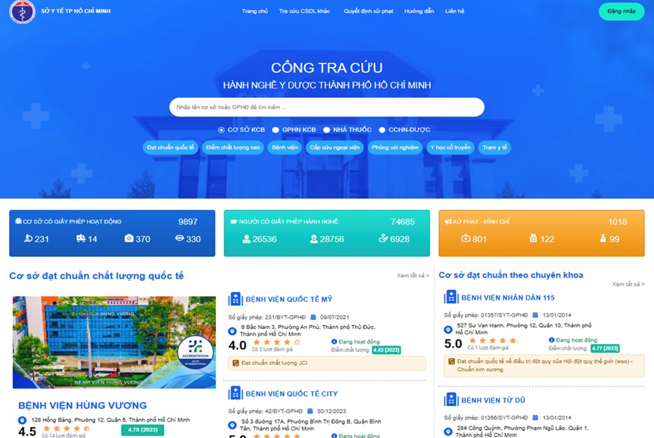 Cổng tra cứu thông tin hành nghề y dược của Sở Y tế giúp người dân dễ dàng tìm kiếm cơ sở khám chữa bệnh