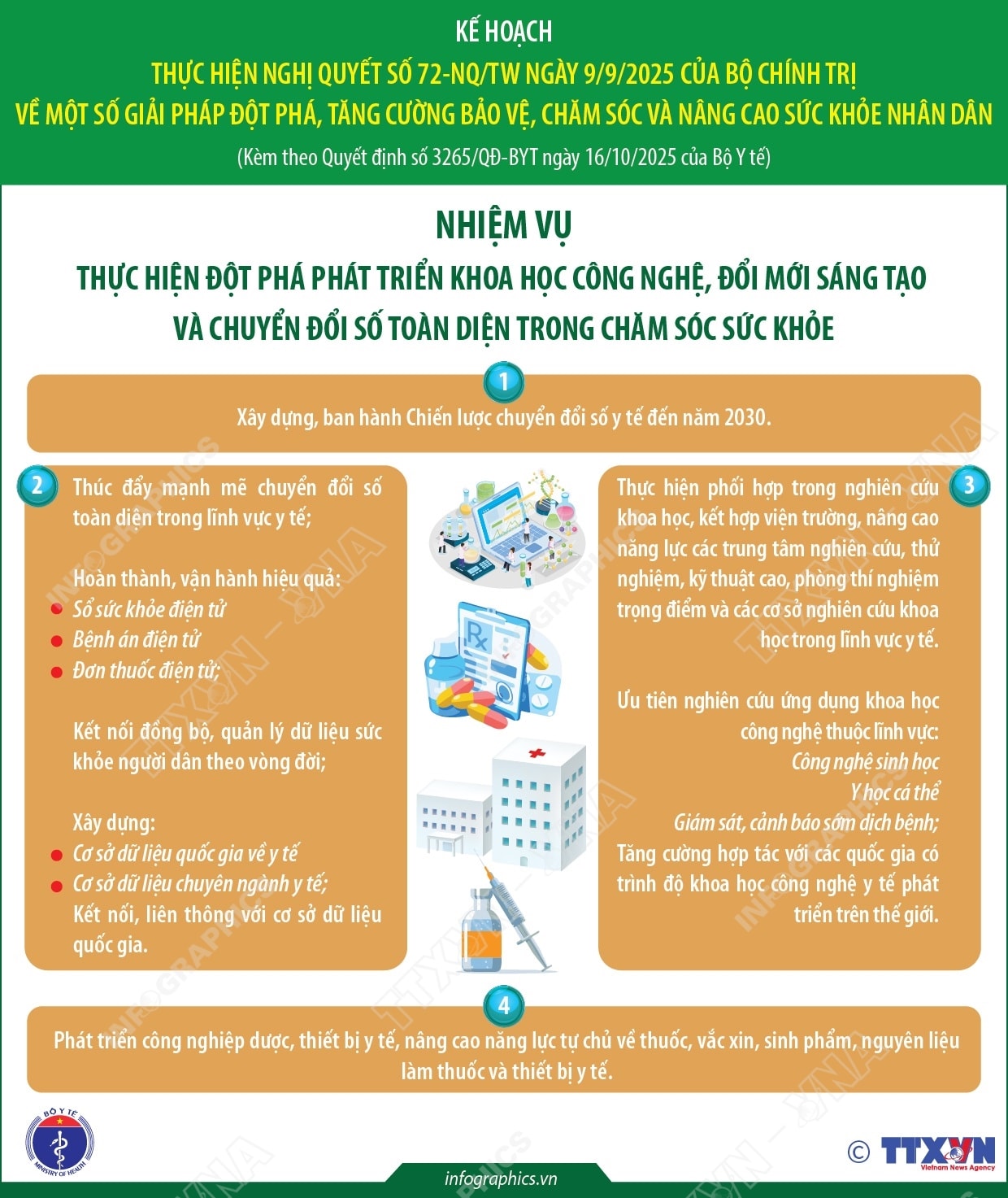 Bộ Y tế ban hành kế hoạch thực hiện Nghị quyết số 72-NQ/TW ngày 09/9/2025 của Bộ Chính trị về một số giải pháp đột phá, tăng cường bảo vệ, chăm sóc và nâng cao sức khỏe nhân dân.