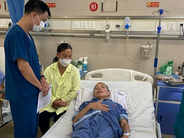 Điều dưỡng Tùng thăm hỏi người bệnh.