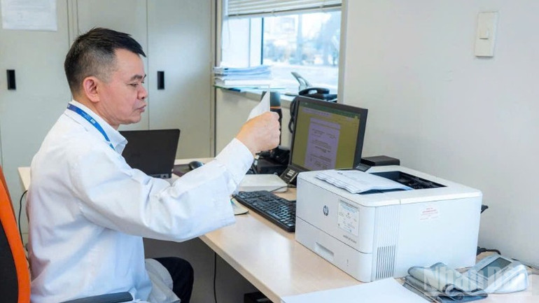 Bác sĩ Ngô Ngọc Quyên, Trưởng Đội Y tế khẩn nguy Nội Bài nghiên cứu trường hợp ca bệnh để tư vấn khả năng bay.