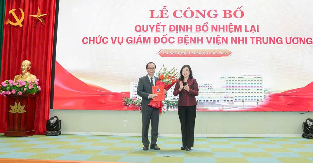 Thứ Năm, ngày 19/03/2026 13:38Sáng 19/3/2026, tại Bệnh viện Nhi Trung ương, Bộ Y tế tổ chức lễ công bố Quyết định của Bộ trưởng Bộ Y tế về việc bổ nhiệm lại Giáo sư, Tiến sĩ Trần Minh Điển giữ chức vụ Giám đốc Bệnh viện Nhi...