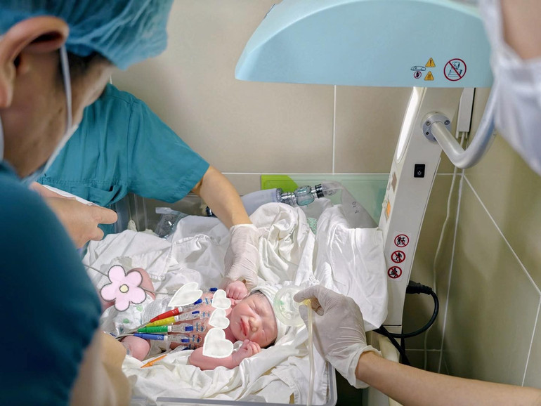 Ngay sau khi chào đời, bé được nhanh chóng đánh giá và ổn định tình trạng tim mạch ban đầu trước khi chuyển tới Bệnh viện Nhi Trung ương để tiếp tục theo dõi và điều trị chuyên sâu.