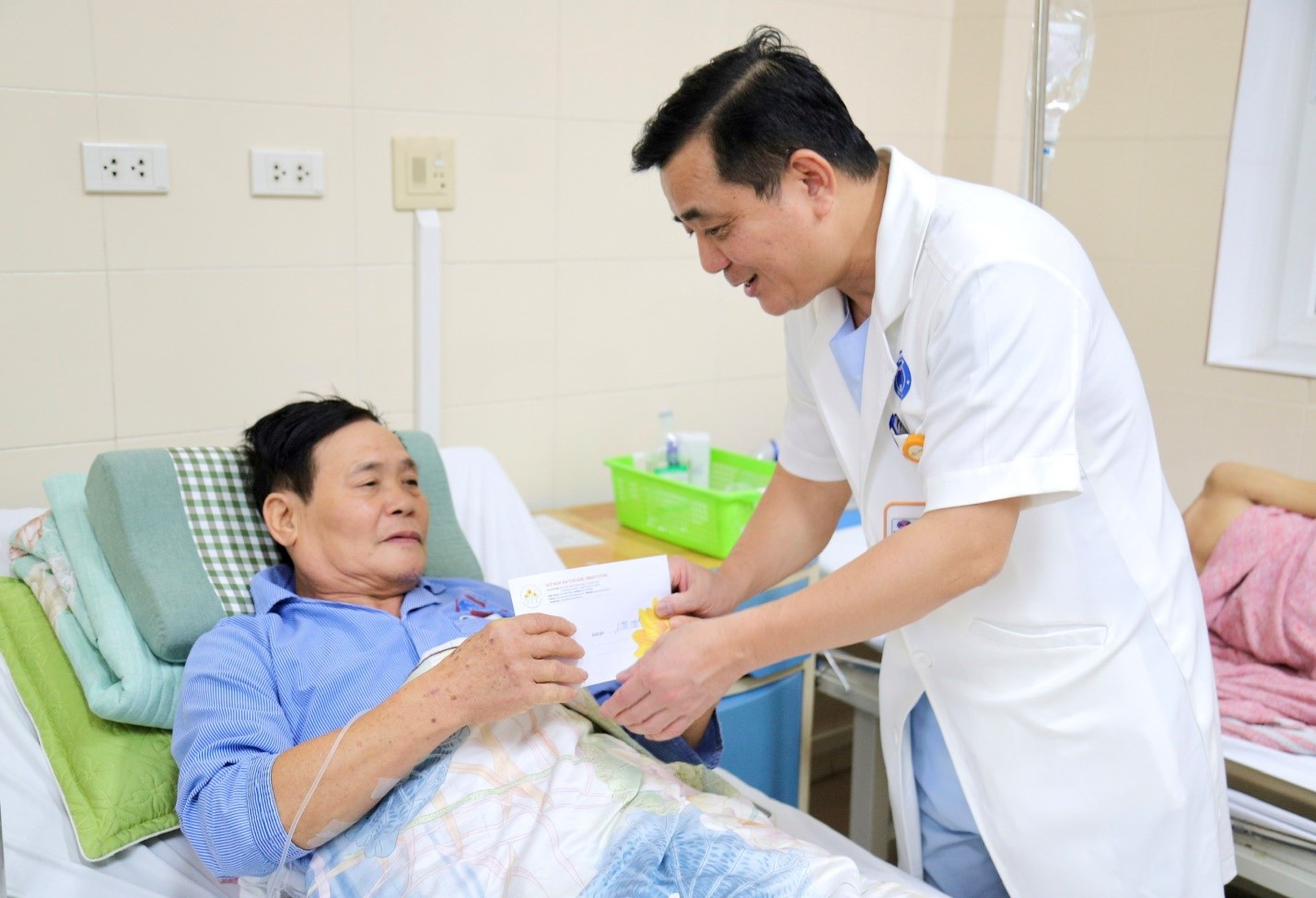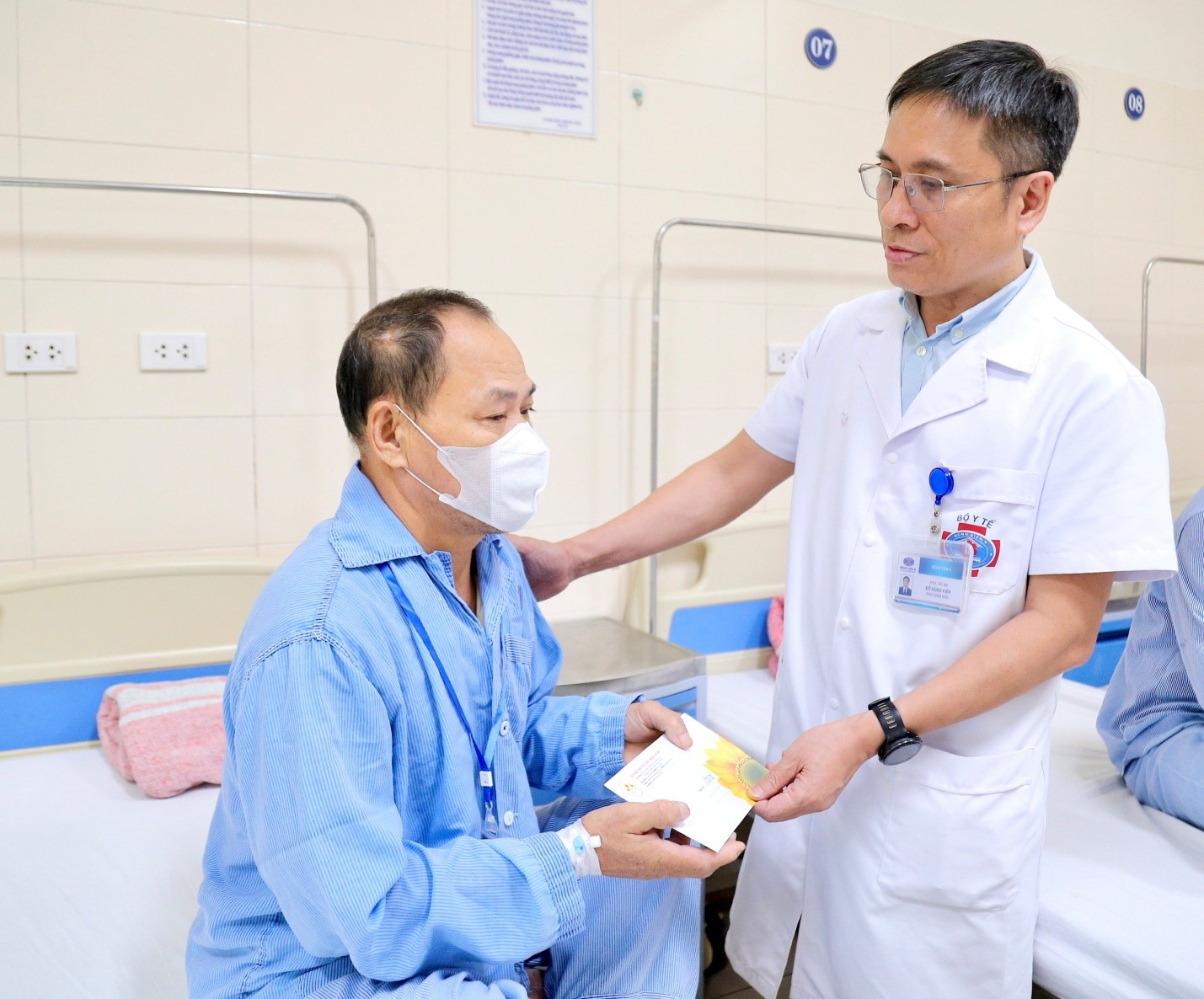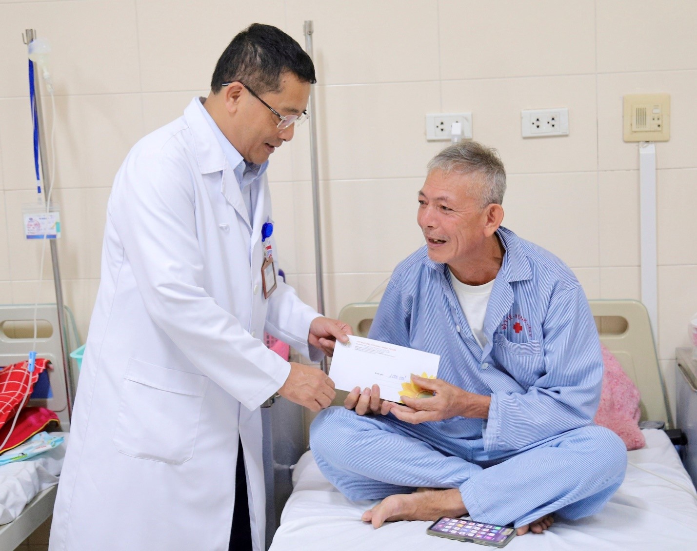 Bệnh nhân Trần Ngọc Ch. (73 tuổi, Thái Nguyên), đang điều trị ung thư tuyến tiền liệt tại Khoa Ngoại Tiết niệu, xúc động nói: “Gia đình tôi bị ảnh hưởng nặng sau mưa bão, nhà ngập, tài sản hư hỏng. Trong khi tôi đang điều trị dài ngày, chi phí rất lớn, nay lại thêm thiệt hại, thật sự lo lắng. Nhận được hỗ trợ từ bệnh viện, tôi rất xúc động, cảm thấy được tiếp thêm niềm tin để cố gắng vượt qua”.
