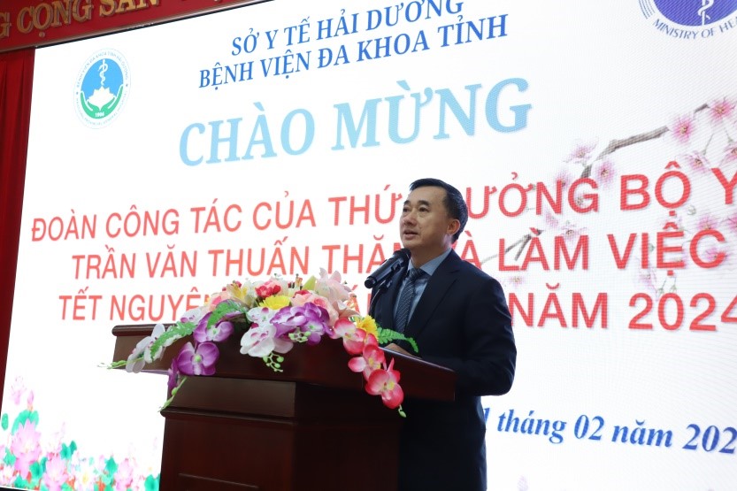 Thứ trưởng Bộ Y tế Trần Văn Thuấn chúc viên chức, người lao động Bệnh viện Đa khoa tỉnh Hải Dương đón Tết cổ truyền đầm ấm, thực hiện tốt nhiệm vụ chăm sóc sức khỏe Nhân dân.