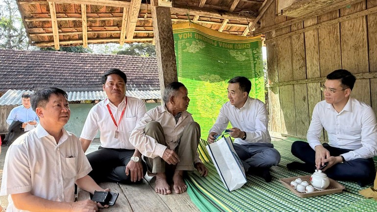 Lãnh đạo Bộ Y tế thăm, tặng quà hộ dân có hoàn cảnh khó khăn trên địa bàn xã Đặng Thùy Trâm.